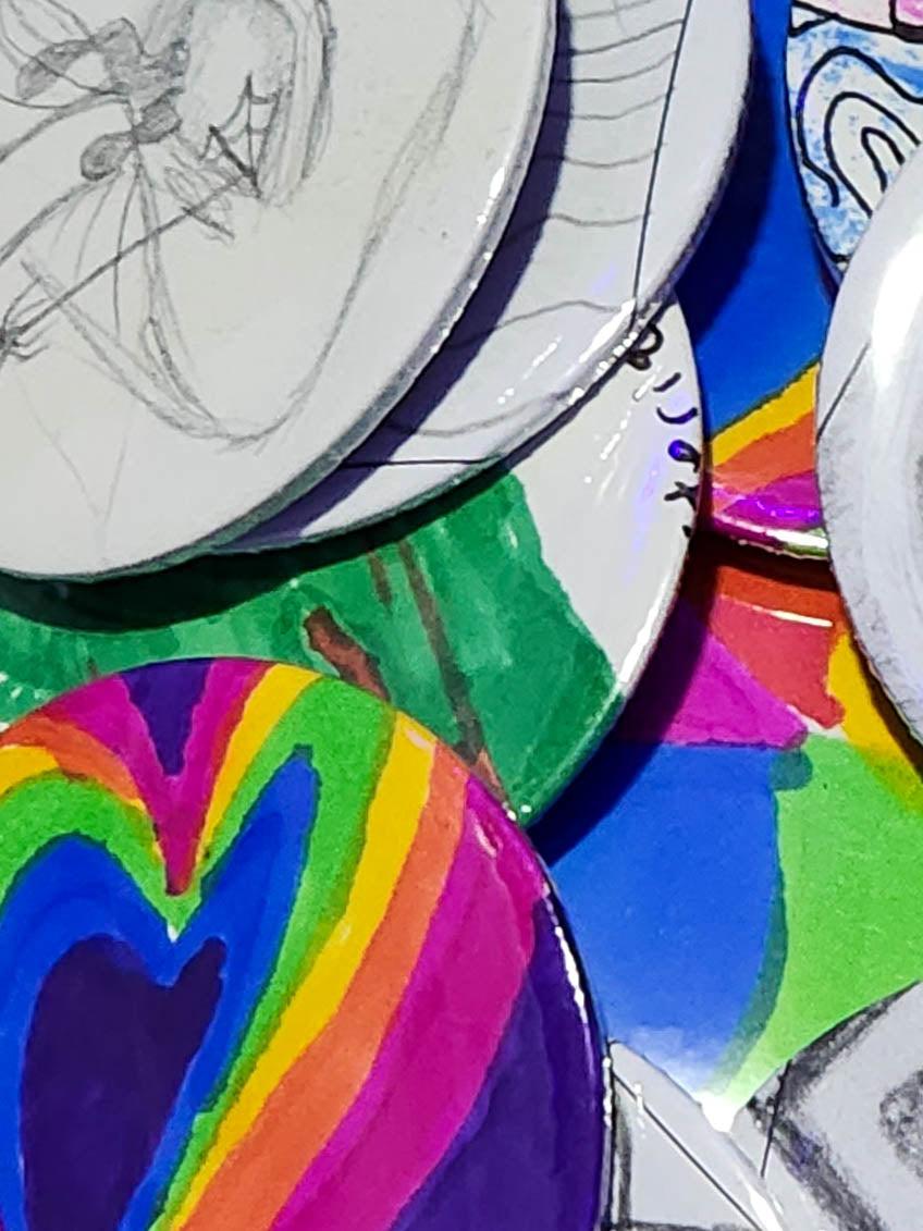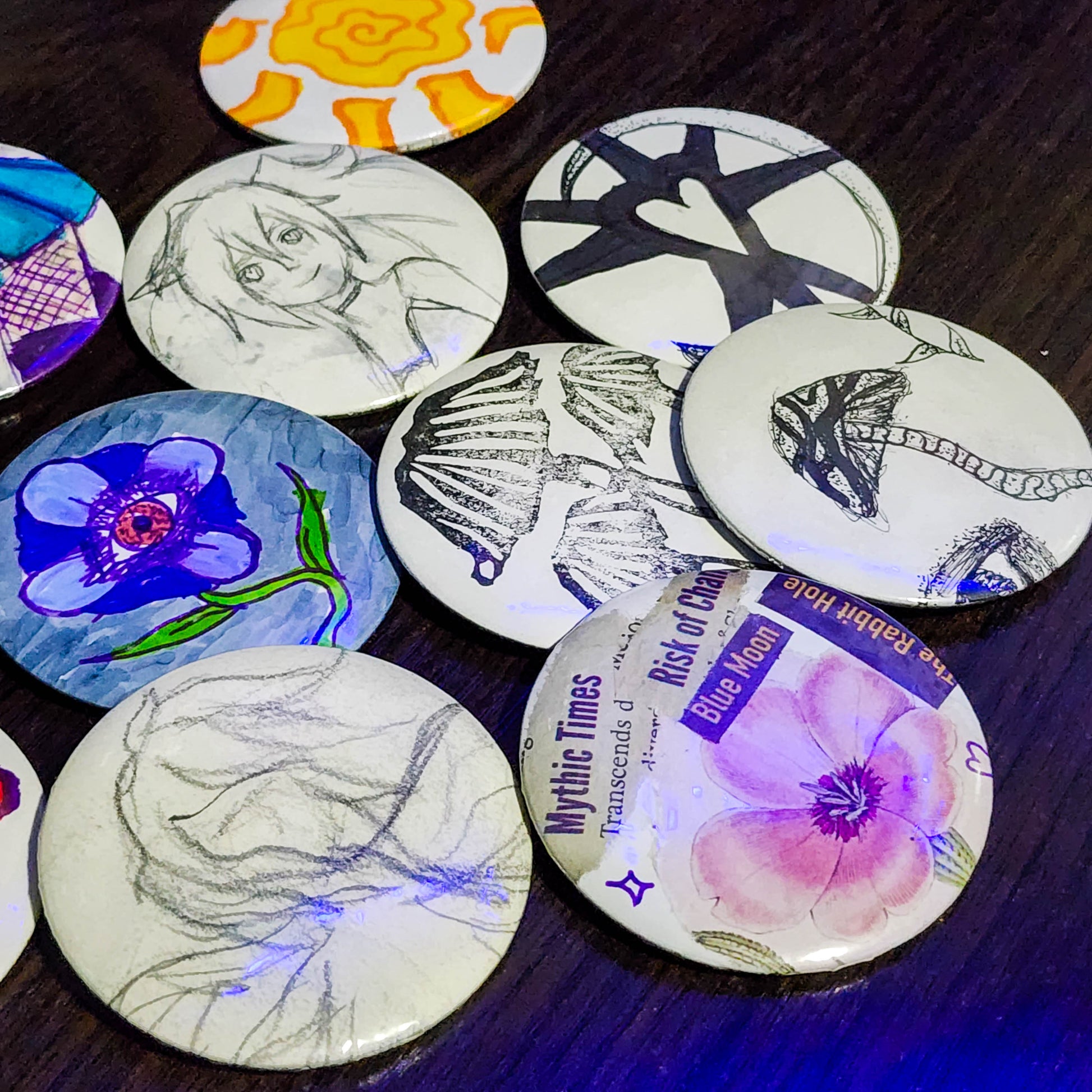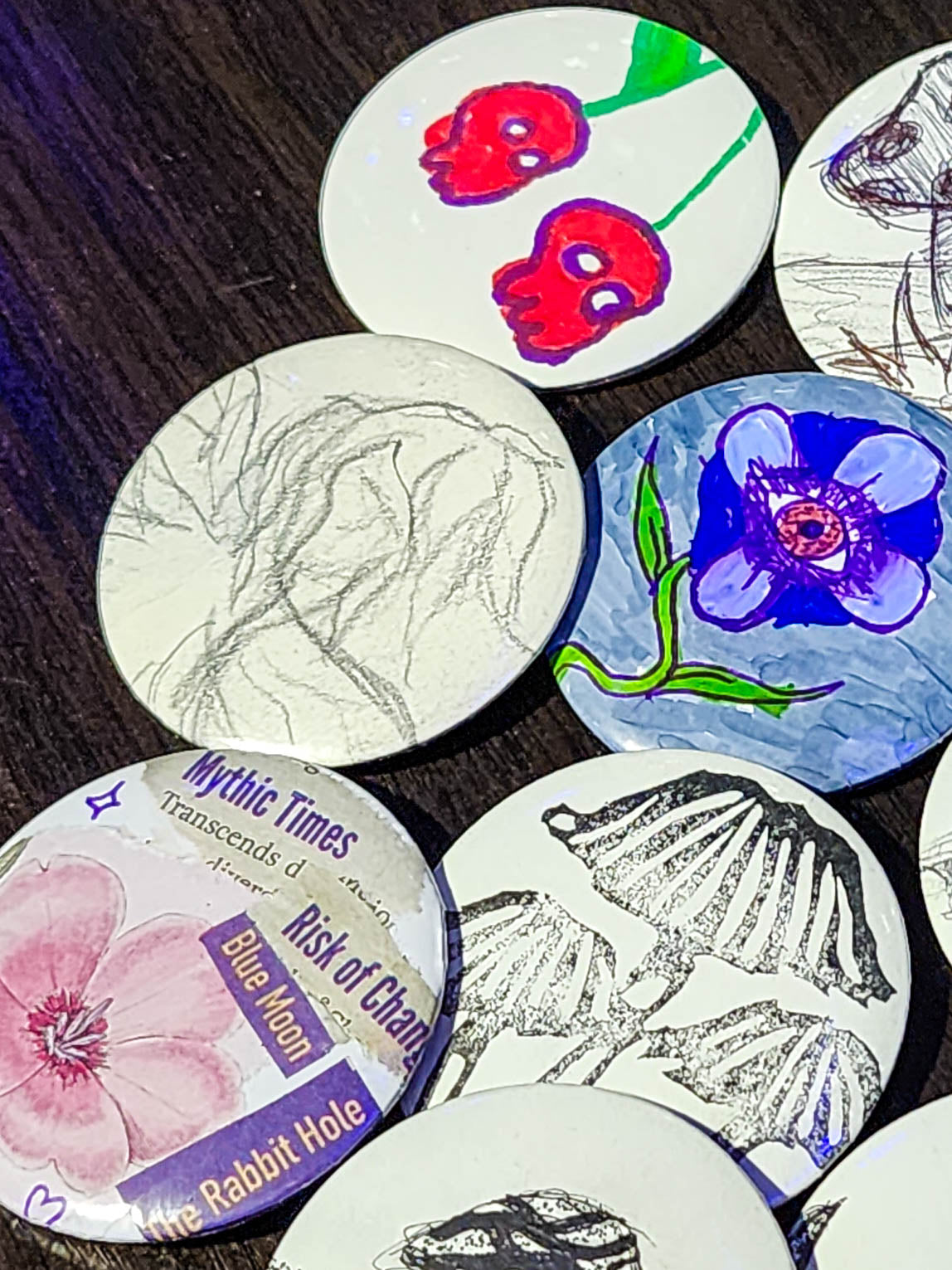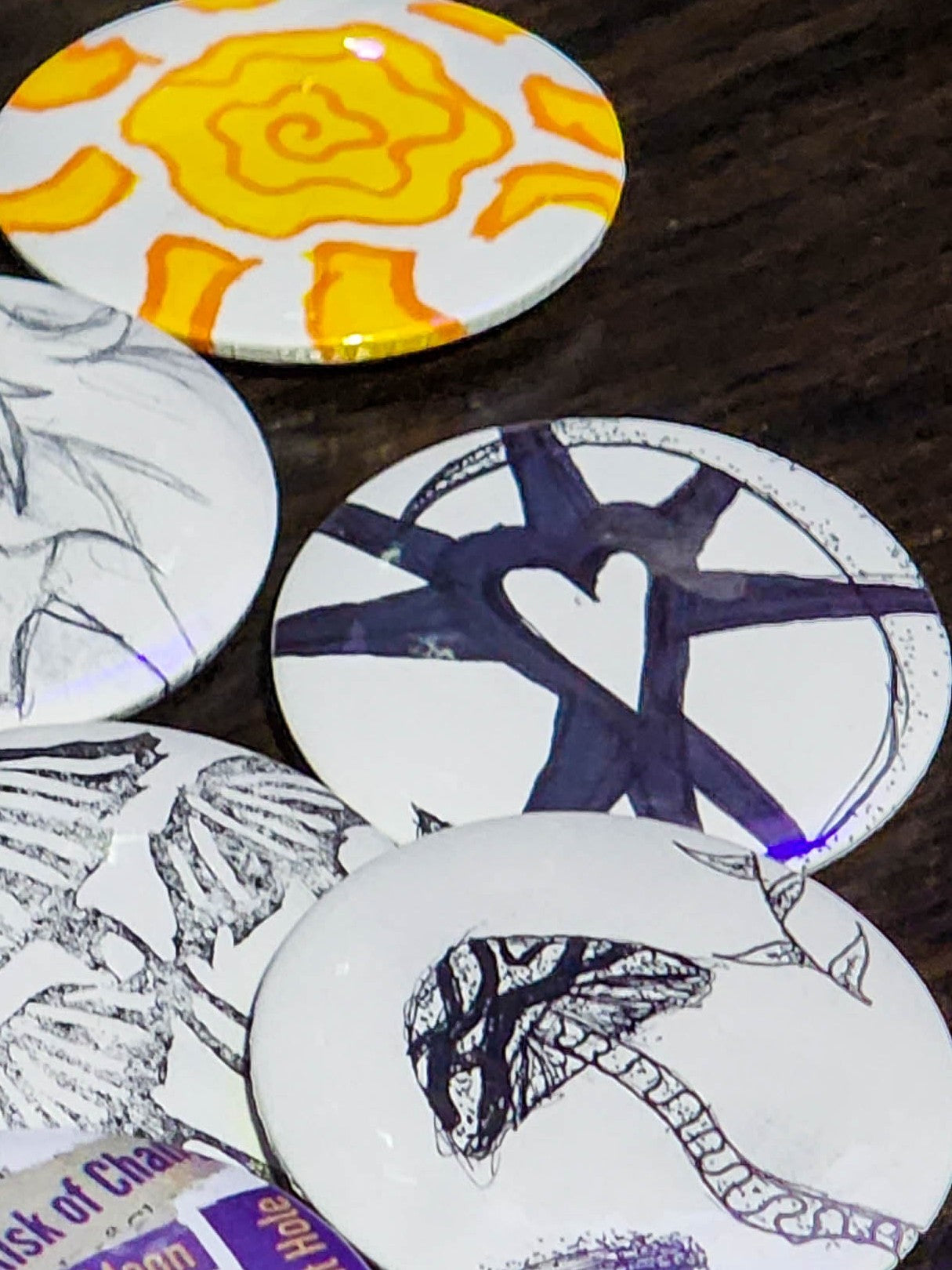 mystery hand drawn pins | pin back buttons | 2.25"